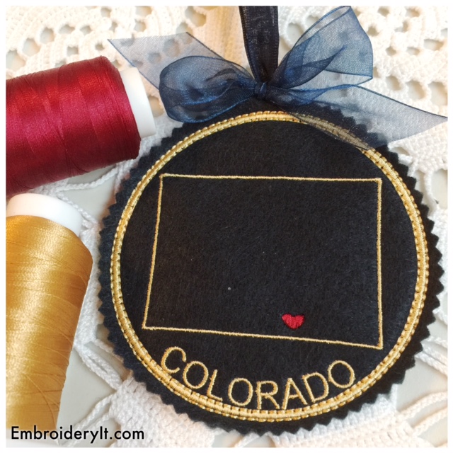 Warm up your embroidery machine and get ready for Christmas and for selling at craft shows by making these state coasters and ornaments.