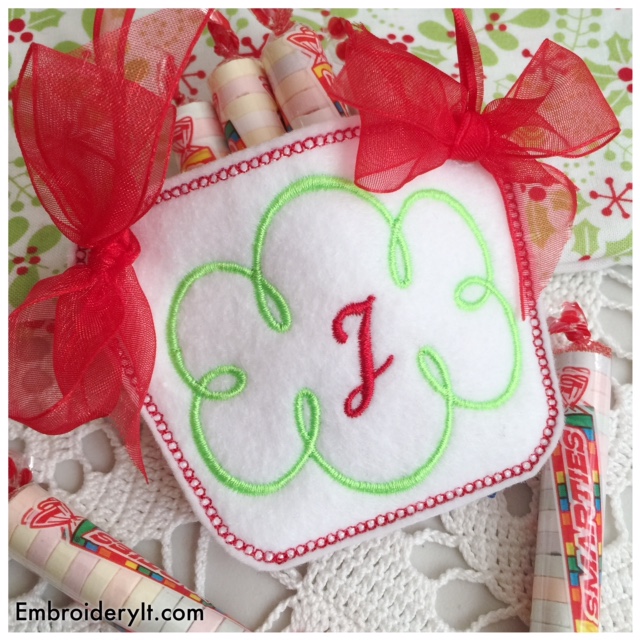 If you remember, throughout 2017 the in-the-hoop project will always be some type of candy holder along with a full alphabet set and all Embroidery Bee designs are made in your 4 x 4 hoop with the occasional exception that a bonus design might be thrown in that requires a larger hoop.
