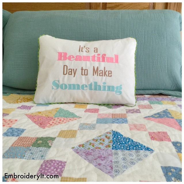 Today’s design is for those of you with those larger hoop sizes. It’s a Beautiful Day to Make Something comes in two sizes. One for your 5 x 7 hoop and the other for your 8 x 12 hoop. Exact sizes are in the Etsy description which you can find HERE.