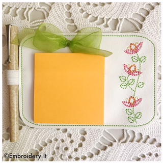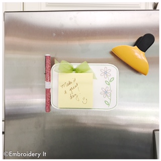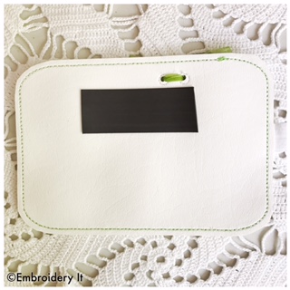 It is made using your 5 x 7 hoop and is stitched on felt and clear vinyl.