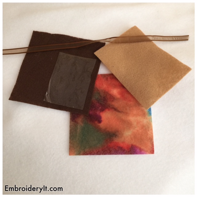 It is made in your 4 x 4 hoop and has step-by-step instructions with lots of photos. The design is stitched on felt and has a clear vinyl window. The felt for the feathers is a tie-died looking felt that I found in the craft felt section where you buy they squares of felt. I chose a piece that had more oranges and browns on it.