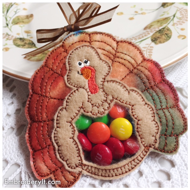 I’m trying a new movie app here. It is a short 26 second video of the Turkey Candy Holder. It is now available in the Embroidery It Etsy Store HERE.
